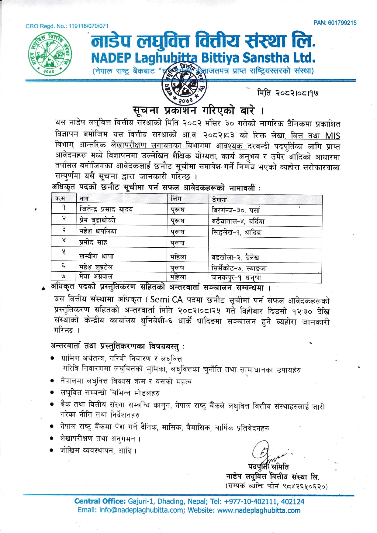 NADEP Laghubitta Bittiya Sanstha Ltd is a micro finance institution licensed as a national level ‘D’ class financial institution from Nepal Rastra Bank the central bank of Nepal. Established as on 29 January 2014 as a public limited company under company act of Nepal and licensed from the central bank of Nepal on 20 April 2015, its head office is in Gajuri 1, Dhading. At Present it has 88 Branches in Jhapa, Morang, Sunsari,Saptari district of eastern Nepal and Bara, Parsa, Rauthat, Sarlahi, Siraha, Mahottari, Dhanusa , Makwanpur, Chitwan, Rasuwa, Dhading , Nuwakot, Kathmandu, Lalitpur, Bhaktapur district of Central region of Nepal. we have opened other branches in Salyan, Rukum, Rolpa,Jajarkot , Dang, Banke, Bardiya districts of mid-western region and Achham, Doti, Dadeldhura, Baitadi, Kanchanpur and Kailai districts of Far-Western region. Furthermore, we are providing services from our new branches from Okhaldhunga, Khotang and Bhojpur districts in eastern region and Kapilvastu, Argakhachi, Palpa, Gulmi, Pyuthan, Rupendehi and Nawalparasi districts of western region.Recently we are providing services from Kaski, Lamjung, Tanahun, Baglung, Parbat and Myagdi districts too in western region.